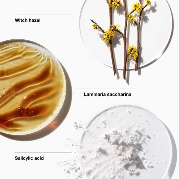 Active: 1.0% Salicylic Acid. Inactive: Alcohol Denat., Water / Aqua / Eau, Acrylates / C10-30 Alkyl Acrylate Crosspolymer, Hamamelis Virginiana (Witch Hazel), Laminaria Saccharina Extract, Sea Whip Extract, Butylene Glycol, Benzalkonium Chloride.