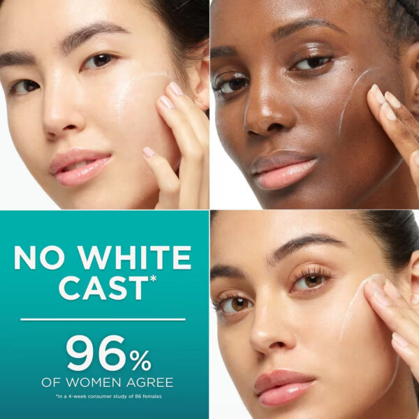 Invisible lightweight texture is non greasy, does not leave a white cast, and blends seamlessly with all skin tones. 96 percent of participants said product does not leave a white cast, in a consumer study of 86 women