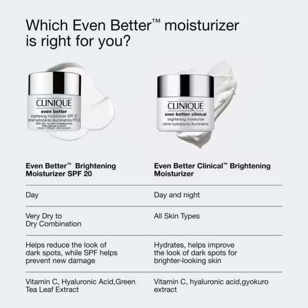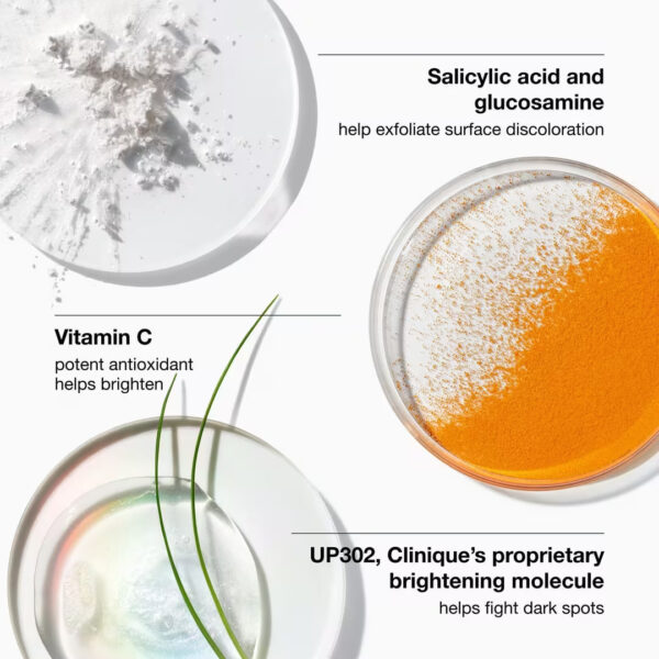 Clinique’s first-ever moisturizer with CL302 Brightening Complex helps visibly improve multiple dimensions of discoloration: dark spot contrast, dark spot intensity, dullness, and redness caused by irritation.