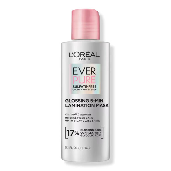 L’Oreal Paris EverPure Sulfate Free at-home glossing service with Glycolic acid, delivers 8x smoother hair and up to five days of intense glass shine for shinier hair than the 82-dollar glossing bundle