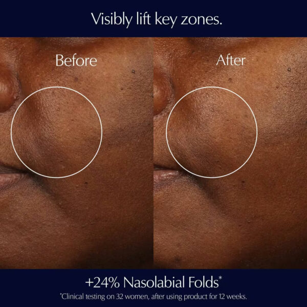 It helps strengthen skin’s support network so skin feels firmer, looks smoother and more sculpted. Elasticity and bounce are improved. Skin looks tighter and more volumized. Lines and wrinkles appear reduced.