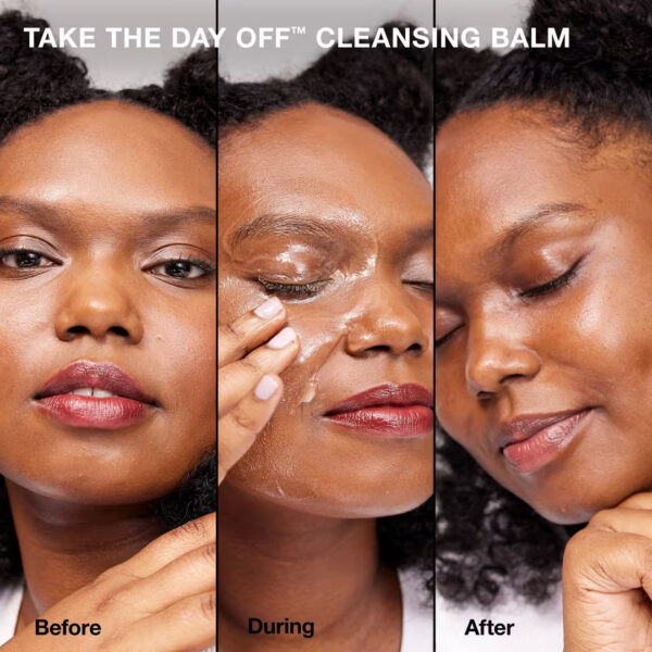 Lightweight Take The Day Off Cleansing Balm Makeup Remover transforms to a silky oil upon application, melting away even tenacious makeup.