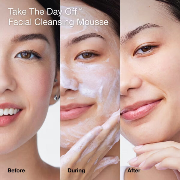Take The Day Off Facial Cleansing Mousse is a silky mousse-to-foam cleanser that conditions as it rinses away face makeup, dirt, and other impurities.